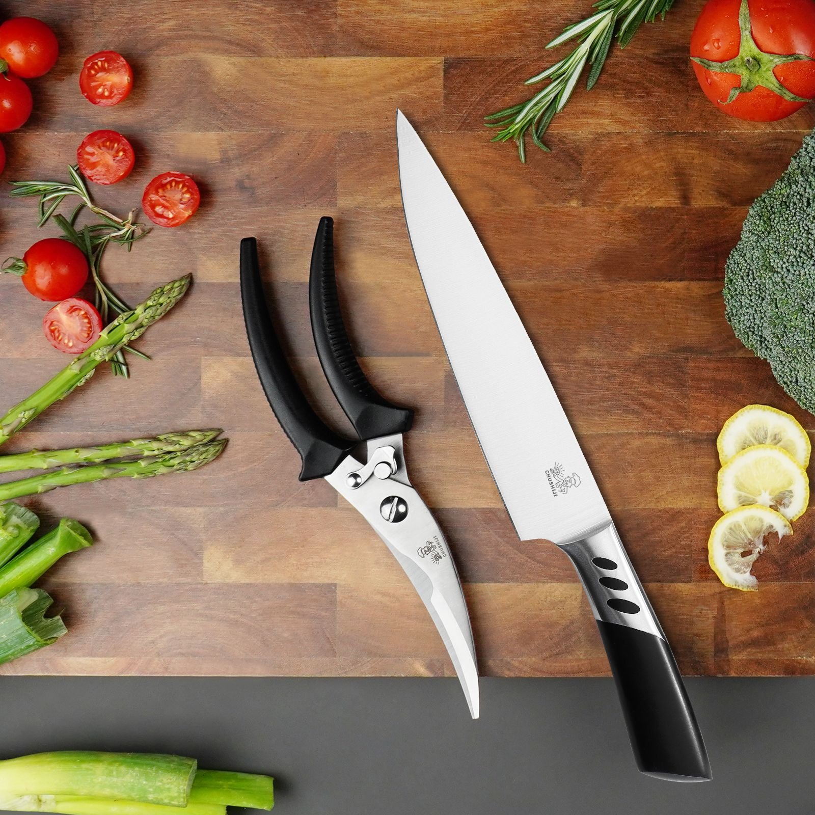 5. The blade back to the lower 45 degree taper Angle gradual grinding, cutting edge Angle evenly controlled below 30 degrees, not only maintain the weight of the blade, but also reduce the cutting resistance, cutting food less effort, feel more comfortable;