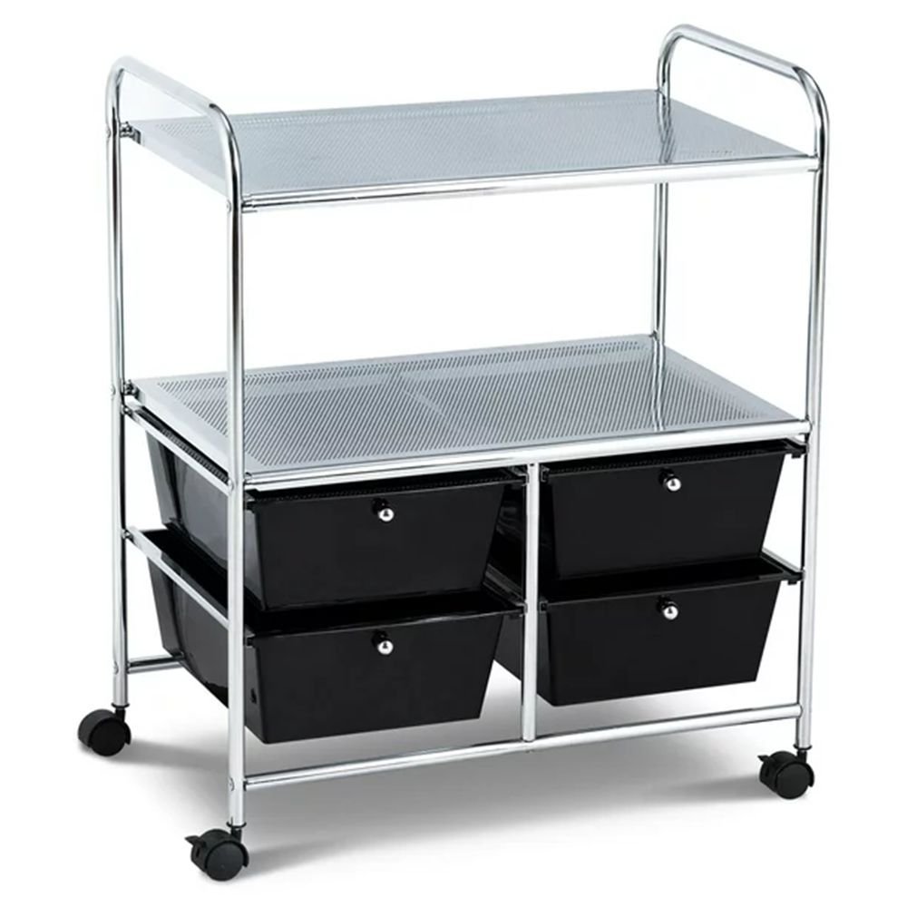 Stop worrying about your messy home! Let's help you keep your house tidy; the 3 tier storage cart has four drawers and two layers; it provide enough spaces to put stuff. Thus; your room will be tidier. Our cart are made of quality steel and pp; durable and sturdy. Shelves with mesh are breathable. It has two handles and four flexible wheels that you can grab and move better; at the same time; two of the wheels can stay stable when it's stationary. Our drawers are detachable. Not only can you put things of different heights; but also take it out for separate use. It can be used in the bathroom; living room; bedroom; balcony or office; and its instructions are simple; you can assemble easily.