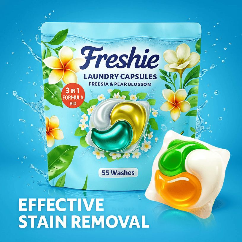 Space saving: Powerful cleaning laundry liquid pods are packaged in a container. Our powerful laundry capsules and leading detergents