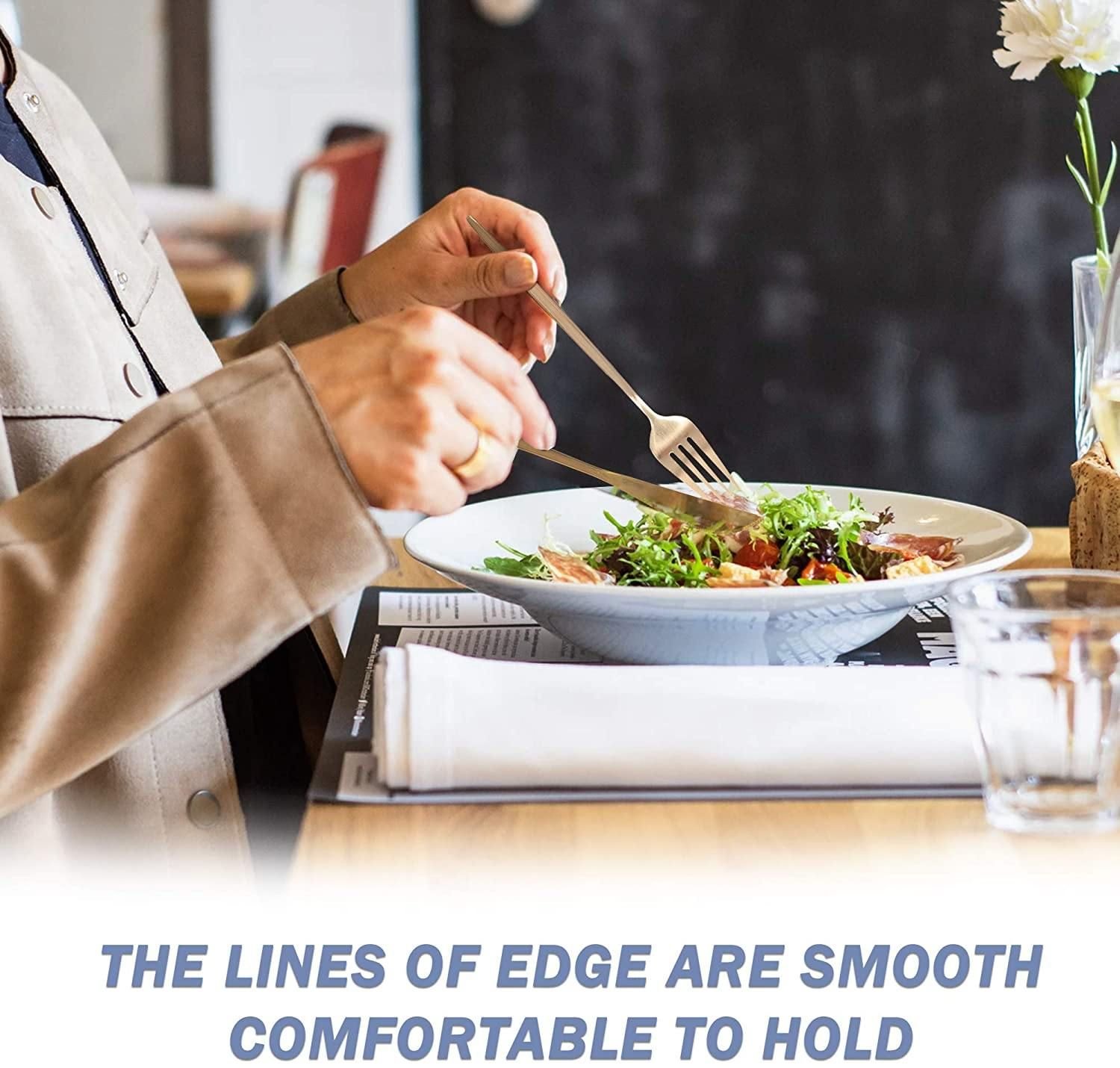 The tableware set consist of tea spoon*6; dinner spoon*6; dinner fork*6; dinner knife*6. Total 24 pieces, service for 6 people.