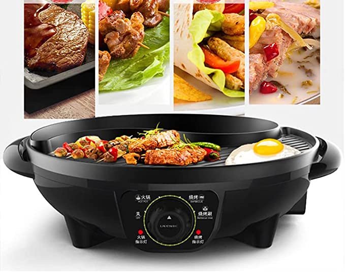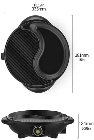 3.Control: Separately control pot and BBQ, with temperature control making cooking more easy.It is a normal phenomenon that the product smells at the first use, because the gas in the pipe is discharged after being energized, which is the smell of the circuit components inside, but after a few times of usation, there is no smell. It is recommended that the customer first heat it without food and clean it with detergent.