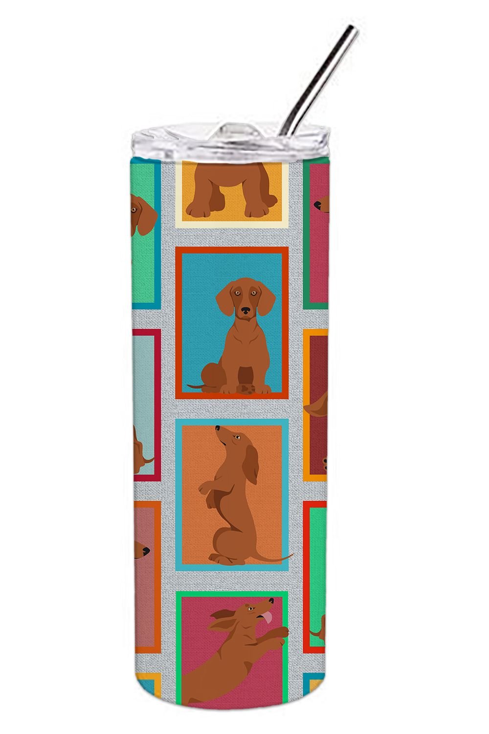 Stainless Steel Skinny Tumbler featuring breed specific Dachshund artwork. Elevate your hydration experience with our Decorative Stainless Steel 20 oz Skinny Tumbler from Caroline's Treasures. This vacuum-insulated, double-walled travel mug is designed to keep your beverages hot or cold for prolonged periods, making it perfect for your coffee, tea, or cocktails. Its sleek and easy-to-grasp design, complemented by the vibrant, top-to-bottom artwork, makes it a stylish accessory for both men and women. Equipped with a secure, slide-open lid, you can enjoy your drinks without worrying about spills, while the included reusable metal straw contributes to reducing plastic use and promoting sustainability. Crafted with quality stainless steel, the tumbler is 100% BPA and Phthalate free, ensuring a safe, non-toxic experience with every sip. Not just functional, this skinny tumbler, complete with gift box, serves as a thoughtful gift for women, mothers, or any loved one. Enjoy your favorite beverages on the go in style, while making a positive impact on the environment. Remember, it's not just a drinkware, it's a lifestyle accessory! Please note: For optimum longevity, hand washing is recommended.