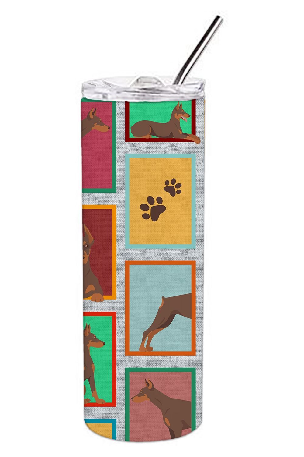 Stainless Steel Skinny Tumbler featuring breed specific Doberman Pinscher artwork. Elevate your hydration experience with our Decorative Stainless Steel 20 oz Skinny Tumbler from Caroline's Treasures. This vacuum-insulated, double-walled travel mug is designed to keep your beverages hot or cold for prolonged periods, making it perfect for your coffee, tea, or cocktails. Its sleek and easy-to-grasp design, complemented by the vibrant, top-to-bottom artwork, makes it a stylish accessory for both men and women. Equipped with a secure, slide-open lid, you can enjoy your drinks without worrying about spills, while the included reusable metal straw contributes to reducing plastic use and promoting sustainability. Crafted with quality stainless steel, the tumbler is 100% BPA and Phthalate free, ensuring a safe, non-toxic experience with every sip. Not just functional, this skinny tumbler, complete with gift box, serves as a thoughtful gift for women, mothers, or any loved one. Enjoy your favorite beverages on the go in style, while making a positive impact on the environment. Remember, it's not just a drinkware, it's a lifestyle accessory! Please note: For optimum longevity, hand washing is recommended.