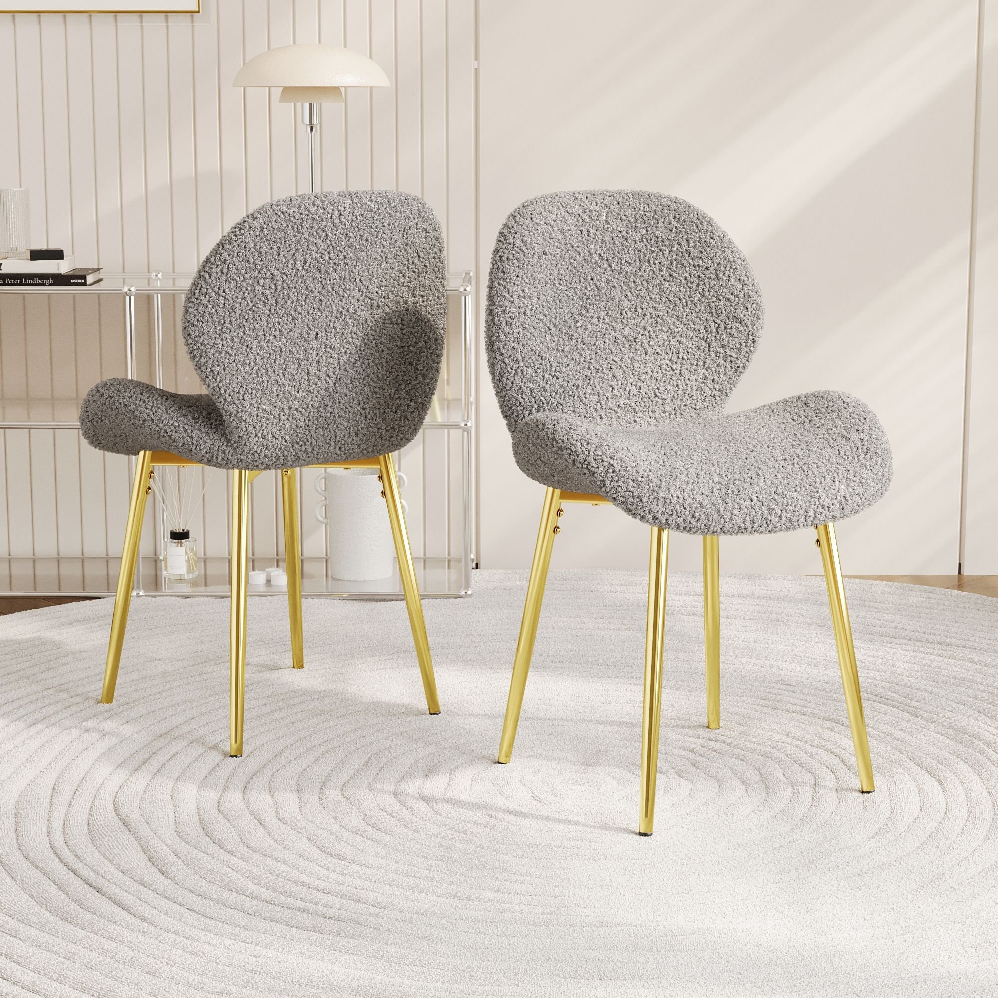 Modern minimalist white teddy velvet Dining Chairs Set of 2 with sturdy gold metal legs and comfortable backrest design, suitable for restaurants Modern minimalist white teddy velvet Dining Chairs Set of 2 with sturdy gold metal legs and comfortable backrest design, suitable for restaurants Modern minimalist white teddy velvet Dining Chairs Set of 2 with sturdy gold metal legs and comfortable backrest design, suitable for restaurants
